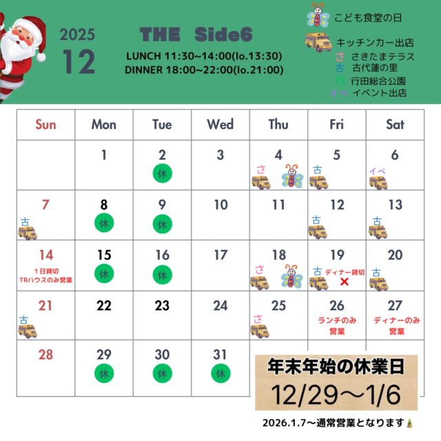 12月の営業・年末年始について分かりやすく下記の画像にまとめましたので、ご確認いただけたら幸いです