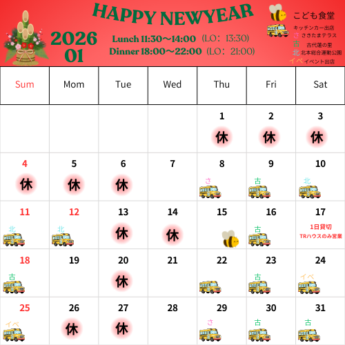 2026年1月の営業について 分かりやすく下記の画像にまとめましたので、ご確認して頂けると幸いです
